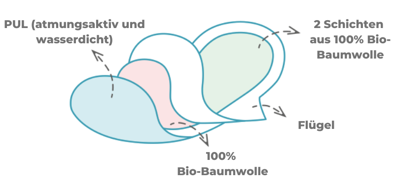 Lege die Binde mit der Frotteeseite nach oben in deinen Schlüpfer (Frotteeseite = Berührungsseite), mit den Flügeln sichern.