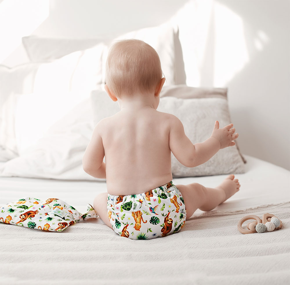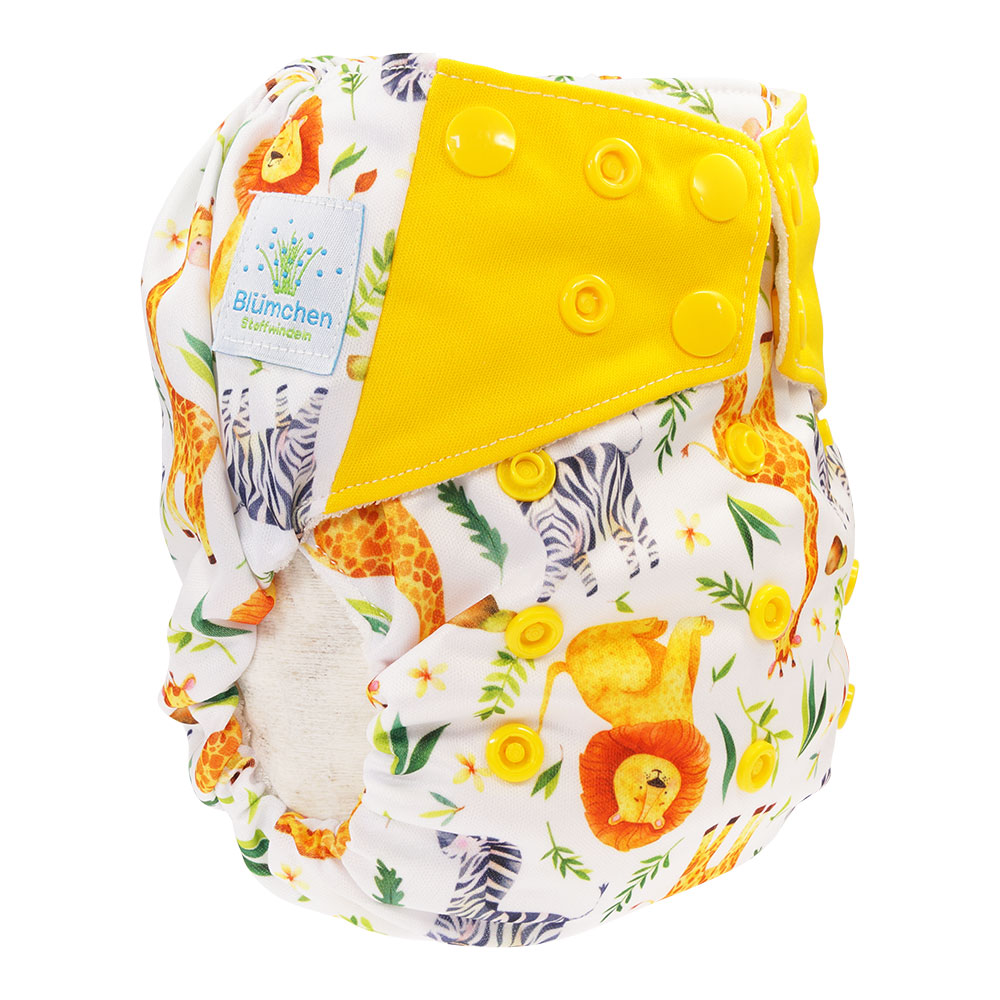 Schlank sitzende, mitwachsende All In One - Windel mit Bambusfutter und Taschenfunktion!
