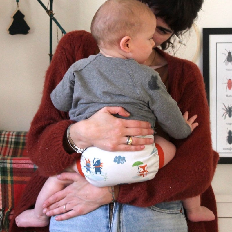 Hybridwindeln (auch Ai3-Windeln) bestehen aus drei Teilen: Einer meist sehr schön bedruckten Überhose, einer wasserdichten Innenwindel (auch Pouch oder Wanne genannt) und einer Saugeinlage welche man in die Innenwindel legt. Alle 3 Teile sind trennbar und können beliebig ausgetauscht und extra gewaschen werden.