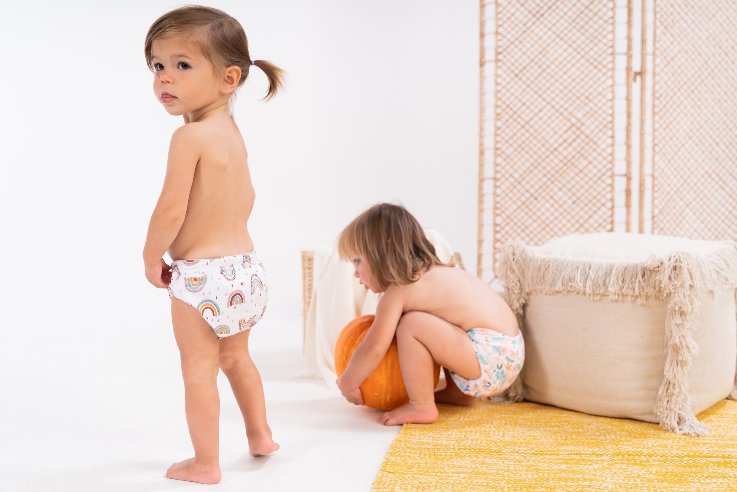 Doodush Überhosen werden aus besonders weichem und elastischem PUL hergestellt. Sie sind in 3 Größen erhältlich, wasserdicht und atmungsaktiv. Innen befinden sich weiche Laschen aus Fleece, damit Saugeinlagen nicht verrutschen und an der gewünschten Position bleiben. Durch den schlanken Schnitt bieten die Überhosen von Doodush besonders viel Bewegungsfreiheit, passen aber nicht gut über voluminöse Höschenwindeln.