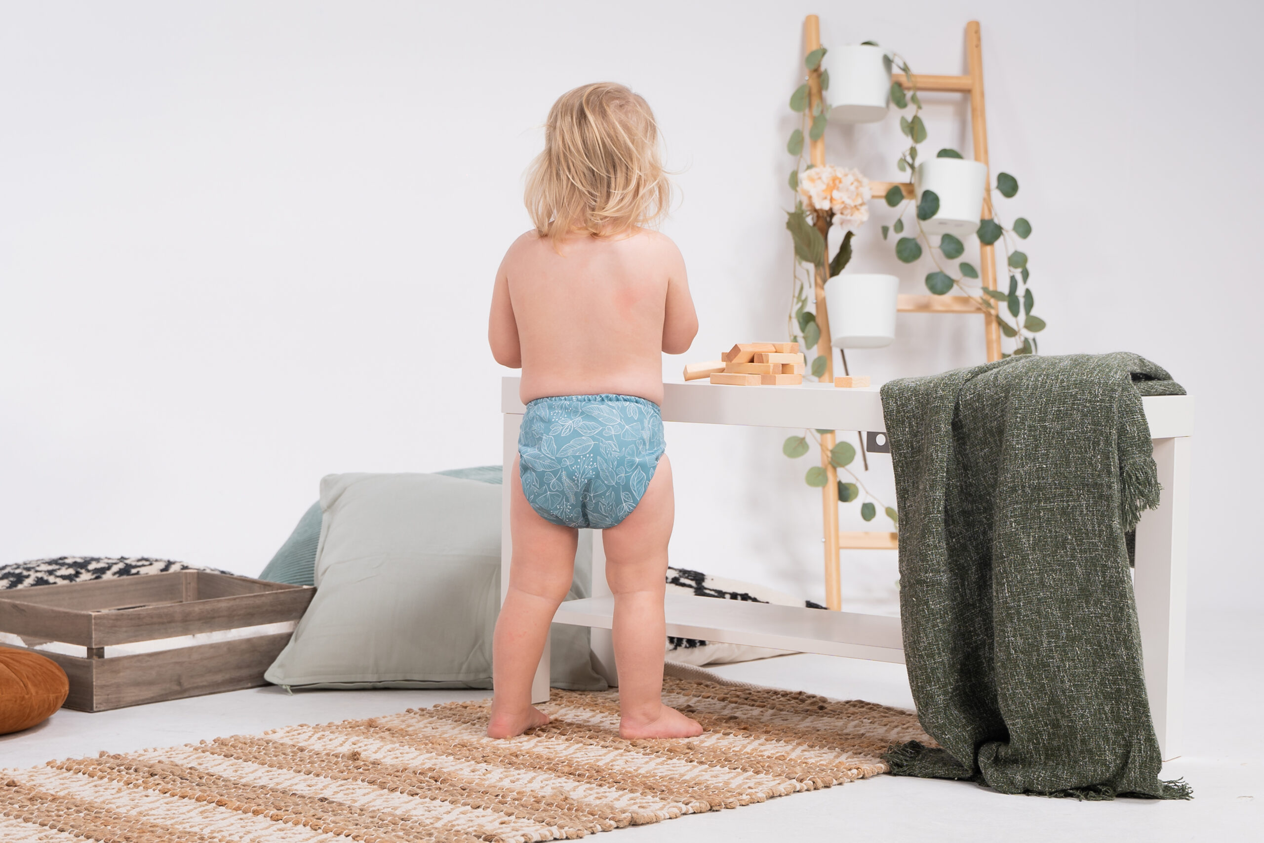 Die robusten Druckknöpfe ermöglichen eine gute und schnelle Anpassung an Alter und Gewicht des Kindes, die weichen Beinbündchen sorgen für einen sicheren Auslaufschutz. Durch das flache Rückenbündchen schmiegt sich die Doodush-Überhose gut und dicht an die Haut an.