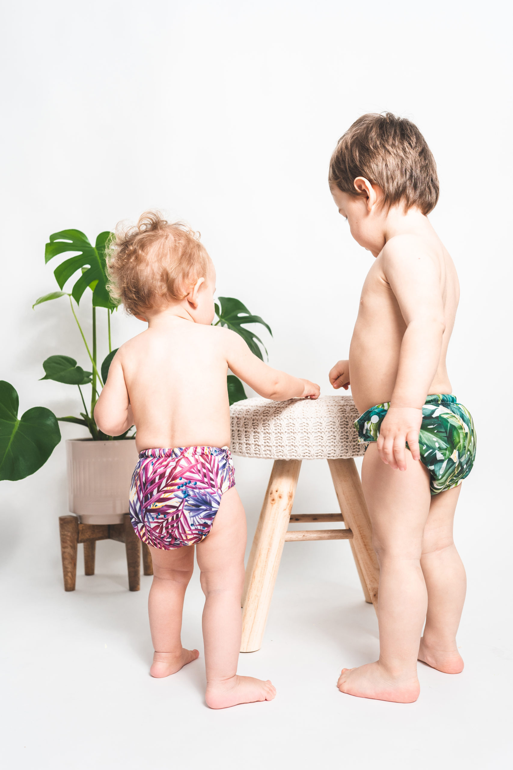 Doodush Überhosen werden aus besonders weichem und elastischem PUL hergestellt. Sie sind in 3 Größen erhältlich, wasserdicht und atmungsaktiv. Innen befinden sich weiche Laschen aus Fleece, damit Saugeinlagen nicht verrutschen und an der gewünschten Position bleiben. Durch den schlanken Schnitt bieten die Überhosen von Doodush besonders viel Bewegungsfreiheit, passen aber nicht gut über voluminöse Höschenwindeln.
