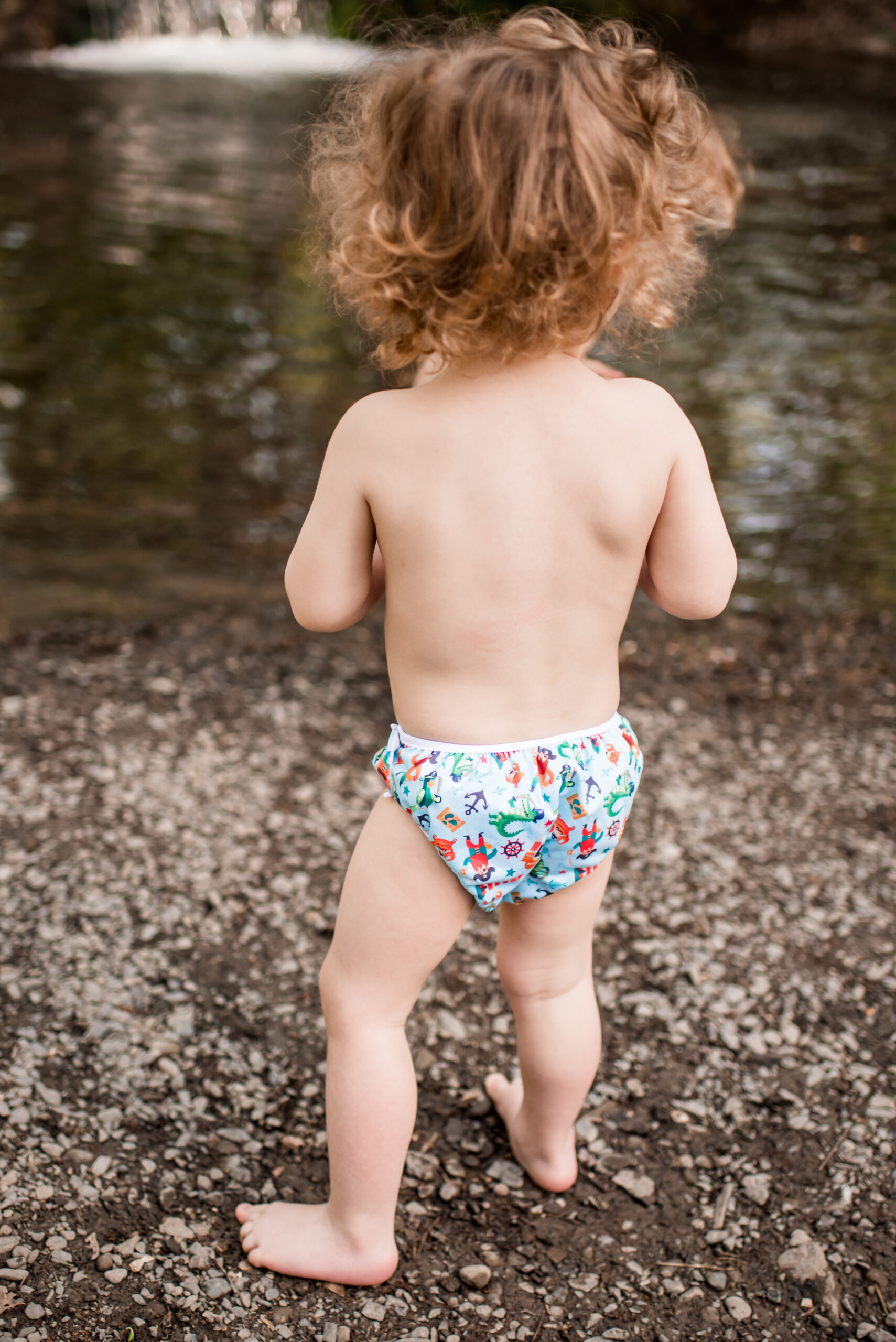 Das wasserdichte Material und die versiegelten Abschlüsse an Beinchen und Taille halten den Inhalt der Schwimmwindel im Inneren und schützen gleichzeitig den Po (z.B. vor Sand am Strand)