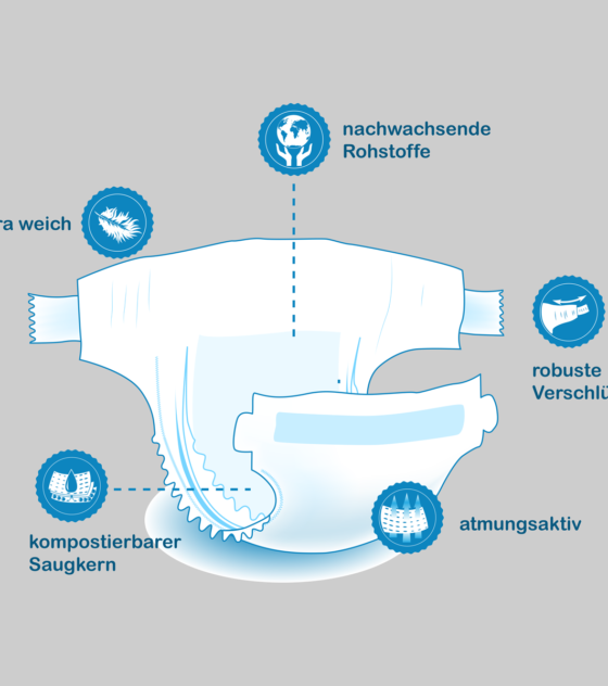 Fairwindeln sind sehr gut verträgliche, atmungsaktive Einwegwindeln - ohne erdölbasiertem Superabsorber!