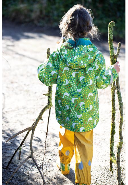 Der wasserdichte Puddle Buster Coat von Frugi ist perfekt für Regenwetter geeignet und hält dein Kind während eines Regengusses warm und trocken!
