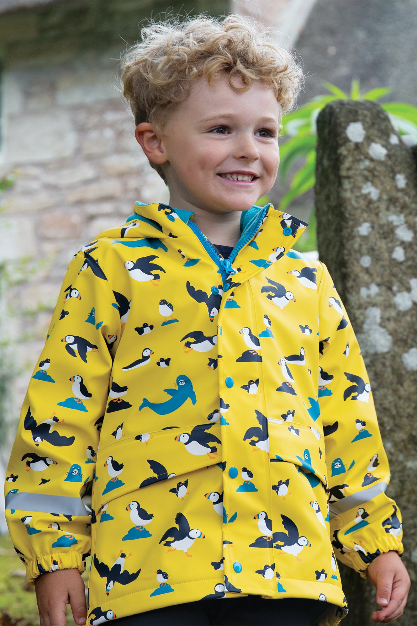 Der wasserdichte Puddle Buster Coat von Frugi ist perfekt für Regenwetter geeignet und hält dein Kind während eines Regengusses warm und trocken!