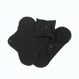 Die Damenbinden von Imse Vimse Black haben "Flügel", bestehen aus einem weichen, saugfähigem kbA-Baumwollflanell und einer Schicht dünnem Polyurethan im Inneren, welche als Nässeschutz dient.