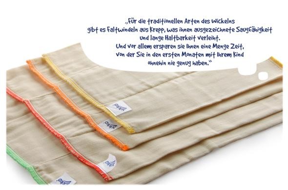 Faltwindel aus 100% Biobaumwolle mit vier Schichten an den Rändern und acht Schichten in der Mitte. Prefolds können zusammengelegt als Saugeinlage in einer Überhose verwendet werden, oder als "Faltwindel" - dazu mit Snappy verschliessen! Die xkko-Prefolds sind aus 100 % Bio-Baumwollkrepp (unbehandelt und ungebleicht!) hergestellt Die natürliche Eigenschaft der unbehandelten Baumwolle ist das Einlaufen, die Prefolds laufen um ca. 10% ein! Die optimale Saugfähigkeit ist nach 4 - 8 Wäsche erreicht. Material: 100% Bio-Baumwolle - unbehandelt und ungebleicht, GOTS zertifiziertWaschbar: bis 95° - vor der 1. Benutzung vorwaschen! Keinen Weichspüler verwenden (Ausnahme UlrichNatürlich)!Maße: 32x34 cm (vor dem Einlaufen!) Unterschiedliche Saumfarben für das einfachere Erkennen der Windelgröße! Packungsinhalt: 6 Stück xkko Prefolds Gr. Infant (oranger Saum) Die Prefolds sind in 4 Größen erhältlich:Newborn (gelber Saum): 29 x 30,5 cm, für NeugeboreneInfant (oranger Saum): 32 x 34 cm, für Babys ab 2 Monate Regular (roter Saum): 35,5 x 40,5 cm, für Babys ab 6 bis 18 Monate Premium (grüner Saum): 38 x 46 cm, für Kinder ab 18 Monate