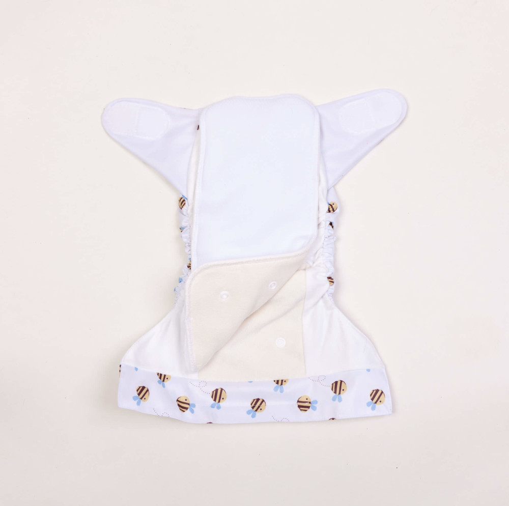 Bei größeren Kindern verwendest du dann zusätzlich die einknöpfbare Saugeinlage um mehr Saugkraft zu erhalten. Die Basiswindel mit der einknöpfbaren Einlage kann bis zu 440ml Flüssigkeit aufnehmen!