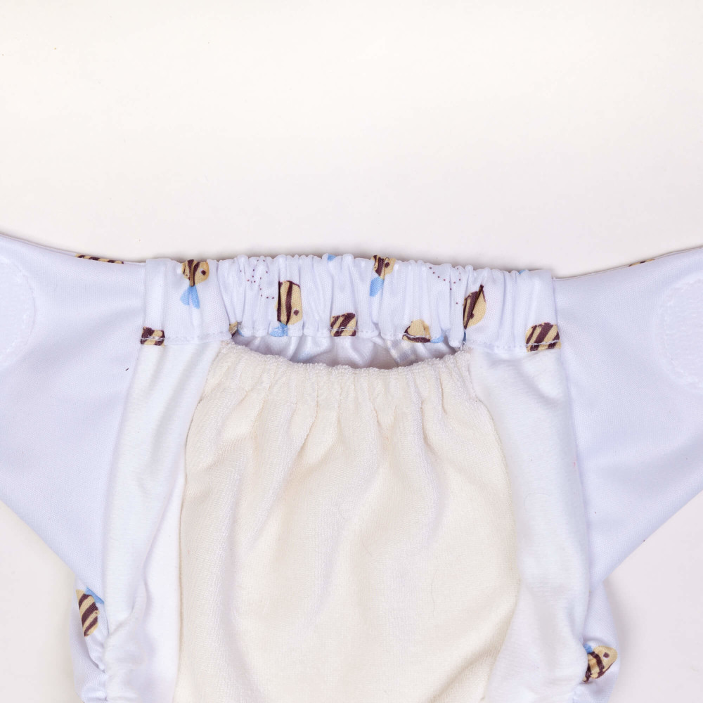 Bei der Verwendung für ein Neugeborenes lässt du einfach die zusätzliche Saugeinlage weg und verkürzt die Windel mittels der Druckknöpfe an der Vorderseite. Durch die zusätzliche Druckknopfreihe erhältst du so eine kleine Windel, die Babys bereits ab ca. 3,5kg passt.