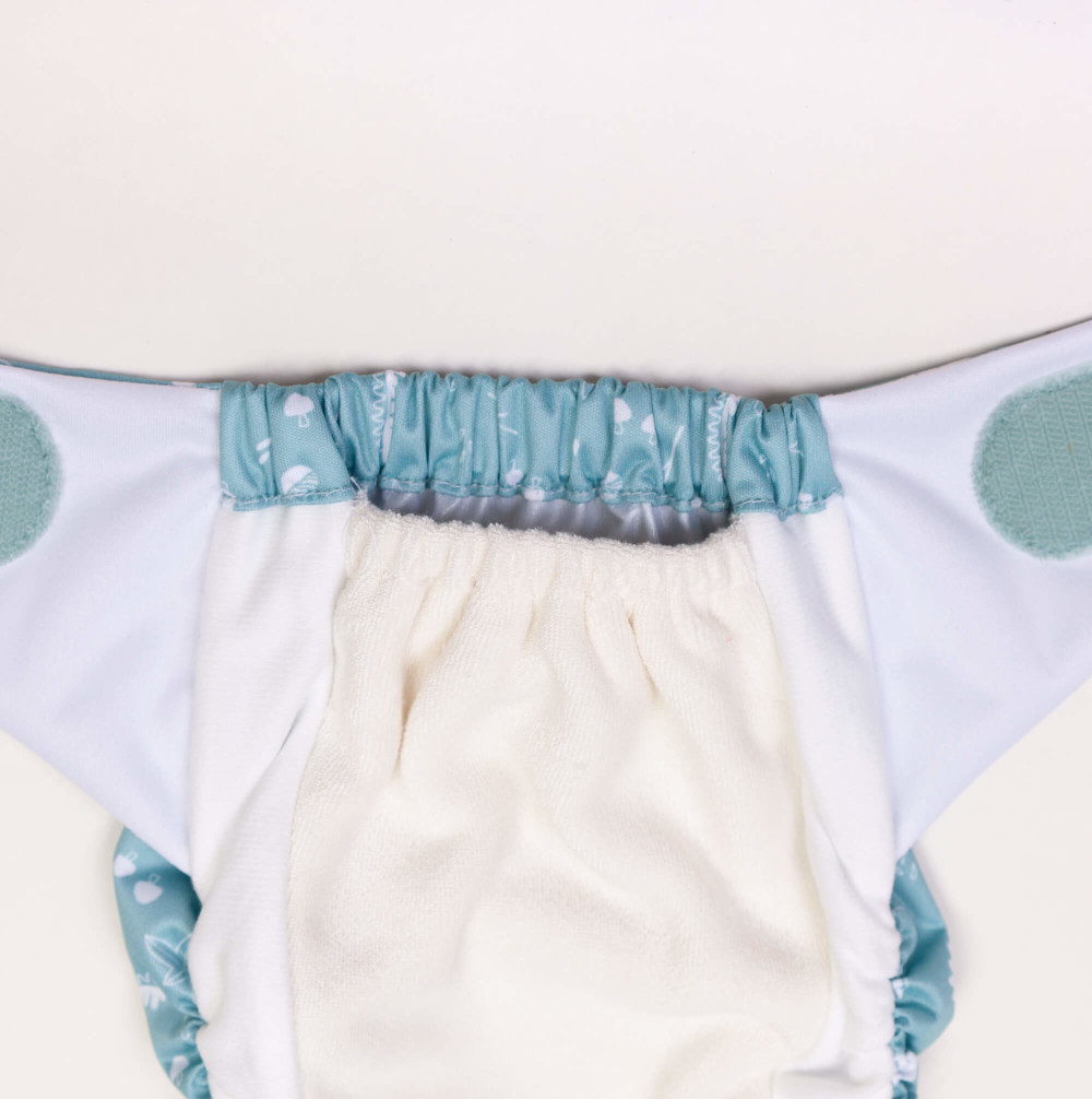 Bei der Verwendung für ein Neugeborenes lässt du einfach die zusätzliche Saugeinlage weg und verkürzt die Windel mittels der Druckknöpfe an der Vorderseite. Durch die zusätzliche Druckknopfreihe erhältst du so eine kleine Windel, die Babys bereits ab ca. 3,5kg passt.