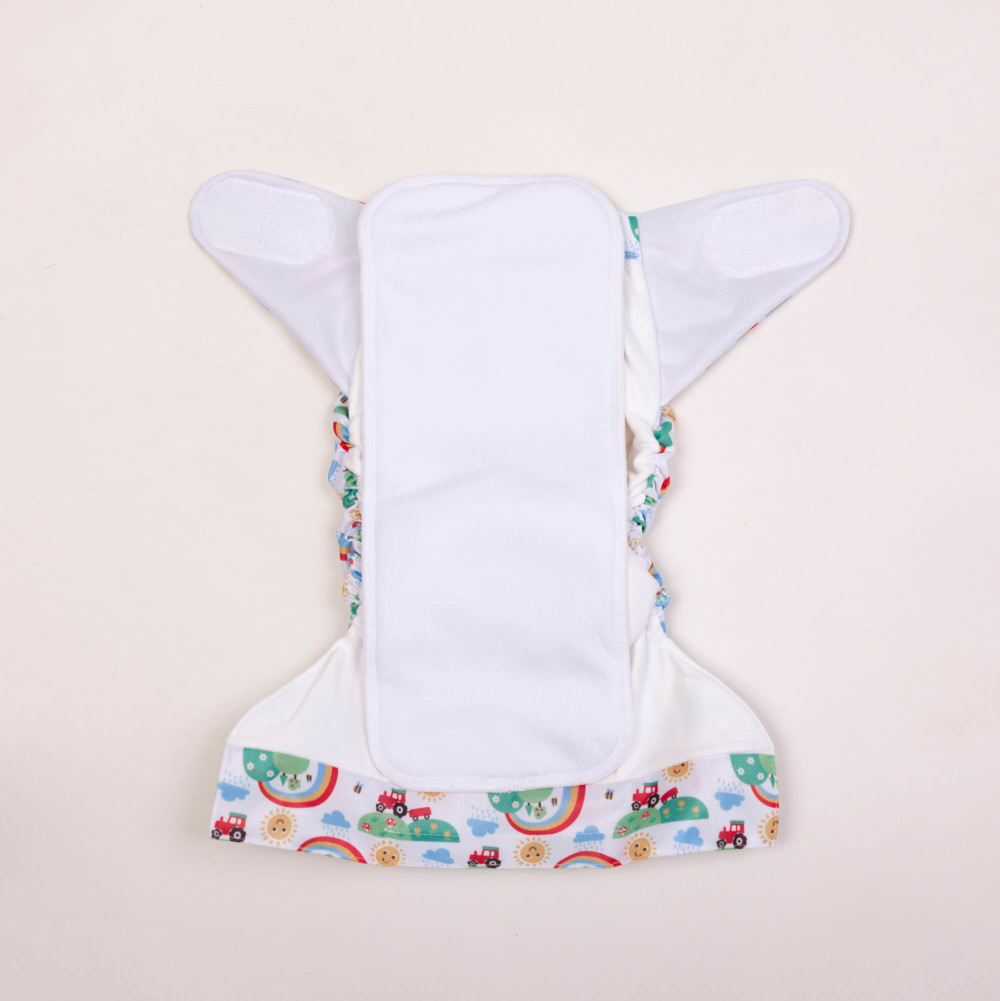 Bei der Verwendung für ein Neugeborenes lässt du einfach die zusätzliche Saugeinlage weg und verkürzt die Windel mittels der Druckknöpfe an der Vorderseite. Durch die zusätzliche Druckknopfreihe erhältst du so eine kleine Windel, die Babys bereits ab ca. 3,5kg passt.