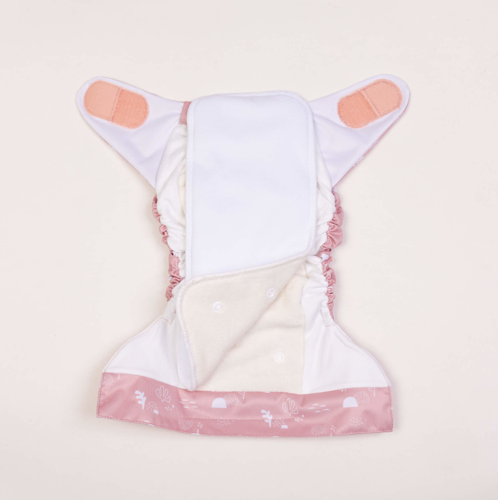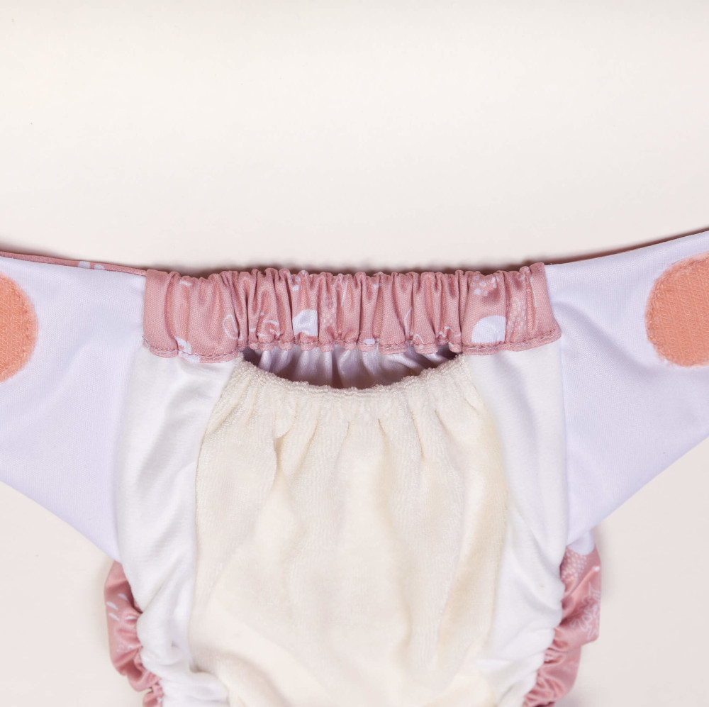 Bei der Verwendung für ein Neugeborenes lässt du einfach die zusätzliche Saugeinlage weg und verkürzt die Windel mittels der Druckknöpfe an der Vorderseite. Durch die zusätzliche Druckknopfreihe erhältst du so eine kleine Windel, die Babys bereits ab ca. 3,5kg passt.