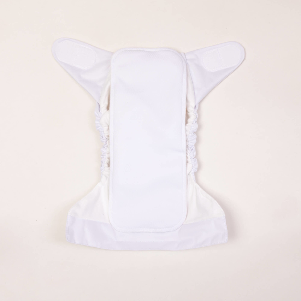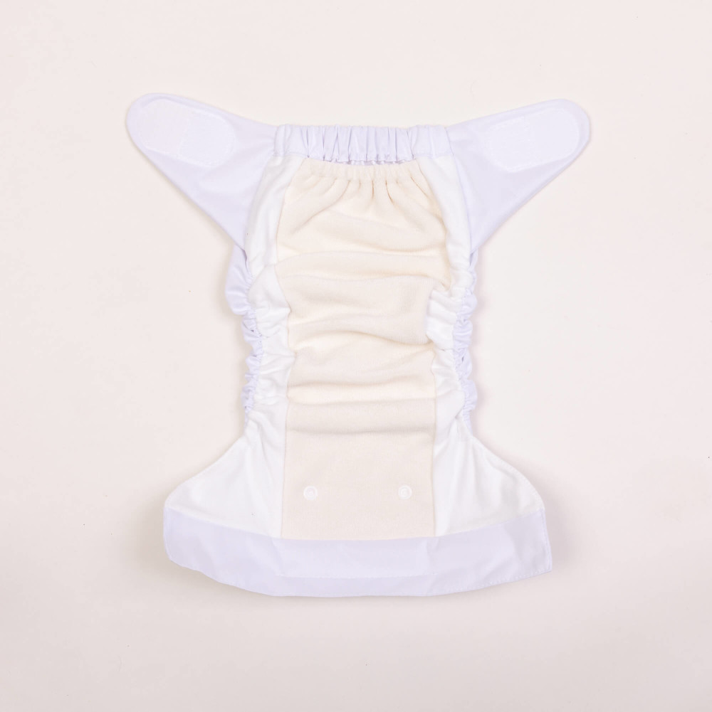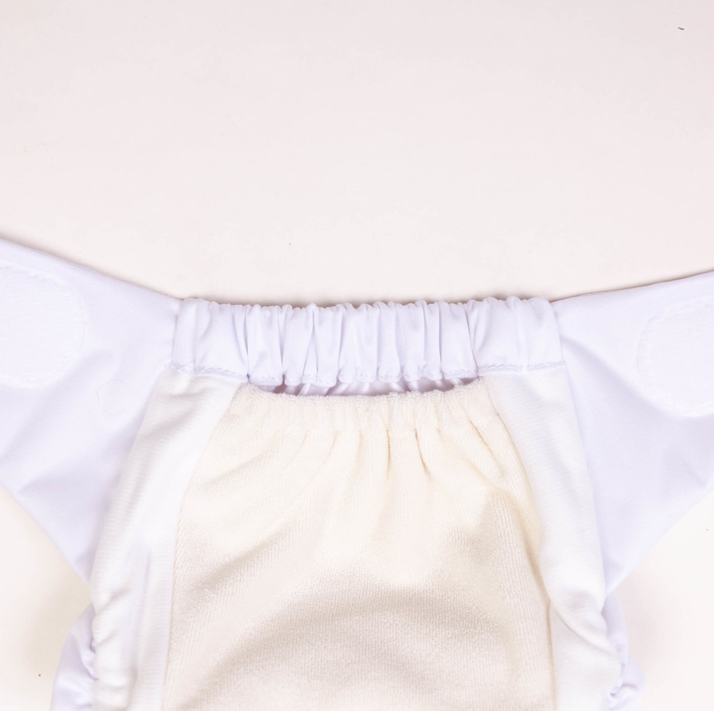 Bei der Verwendung für ein Neugeborenes lässt du einfach die zusätzliche Saugeinlage weg und verkürzt die Windel mittels der Druckknöpfe an der Vorderseite. Durch die zusätzliche Druckknopfreihe erhältst du so eine kleine Windel, die Babys bereits ab ca. 3,5kg passt.