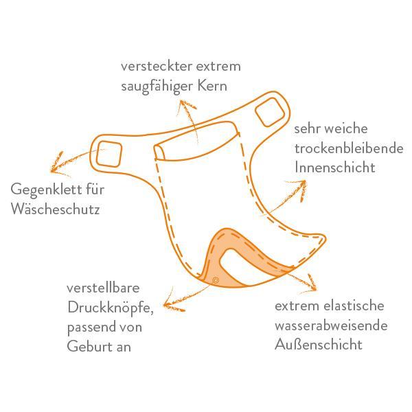- OneSize: mitwachsend ab ca. 4kg bis zum Sauberwerden*