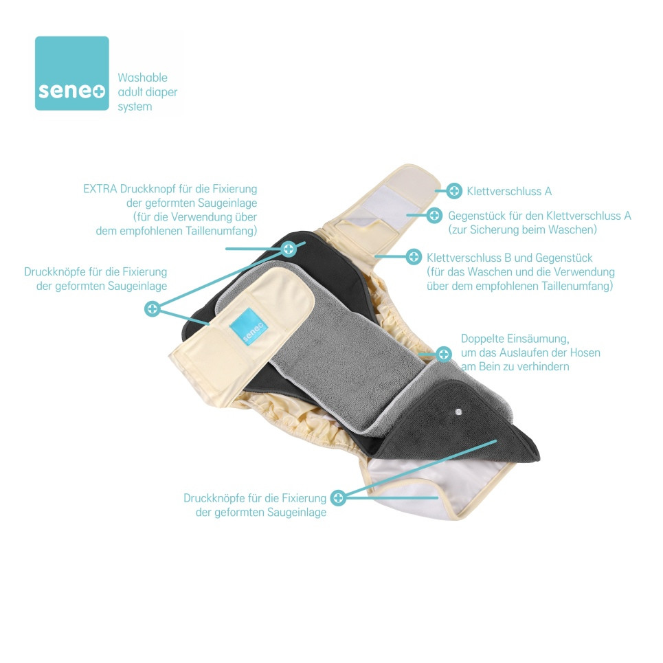 ACHTUNG: Sie benötigen zu den Einlagen die passende SENEO-Überhose! Wenn Sie die Saugfähigkeit des gesamten Systems erhöhen möchten, fügen Sie zusätzlich auch die SENEO Zusatzeinlagen hinzu.